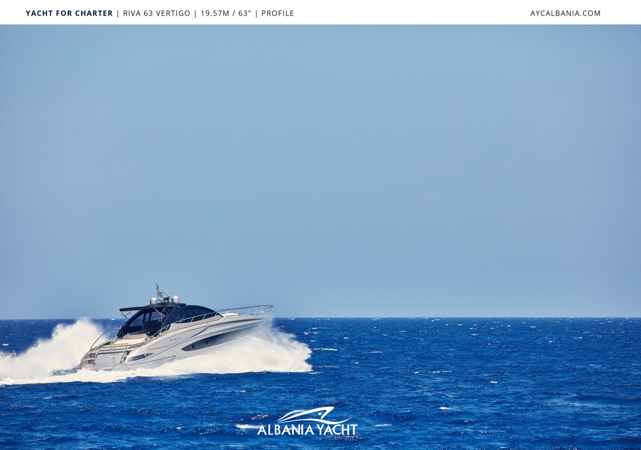 Available for day trips or weekly charters across the Albanian Riviera, Corfu Island and other iconic Mediterranean destinations, the Riva 63 Vertigo offers the ultimate blend of adventure and indulgence.