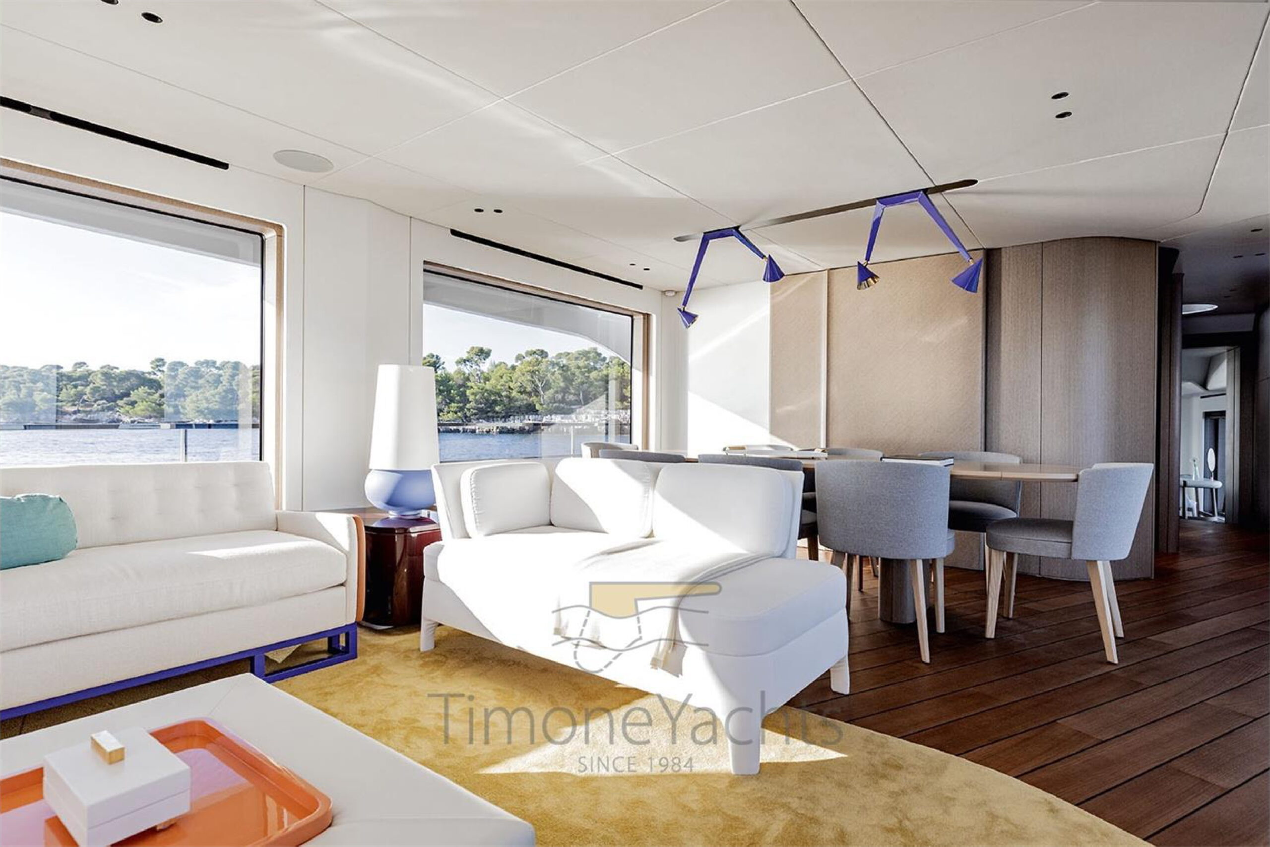 beauty at once. The double cabins follow after the VIPs, appointed with the space, storage and windows essential to enjoying extended stays on board. A single windshield stretches wide across the internal helm station, providing excellent visibility over the flush glass displays. There is a double stair to this centrally positioned area, ensuring easy access from anywhere and therefore safety.