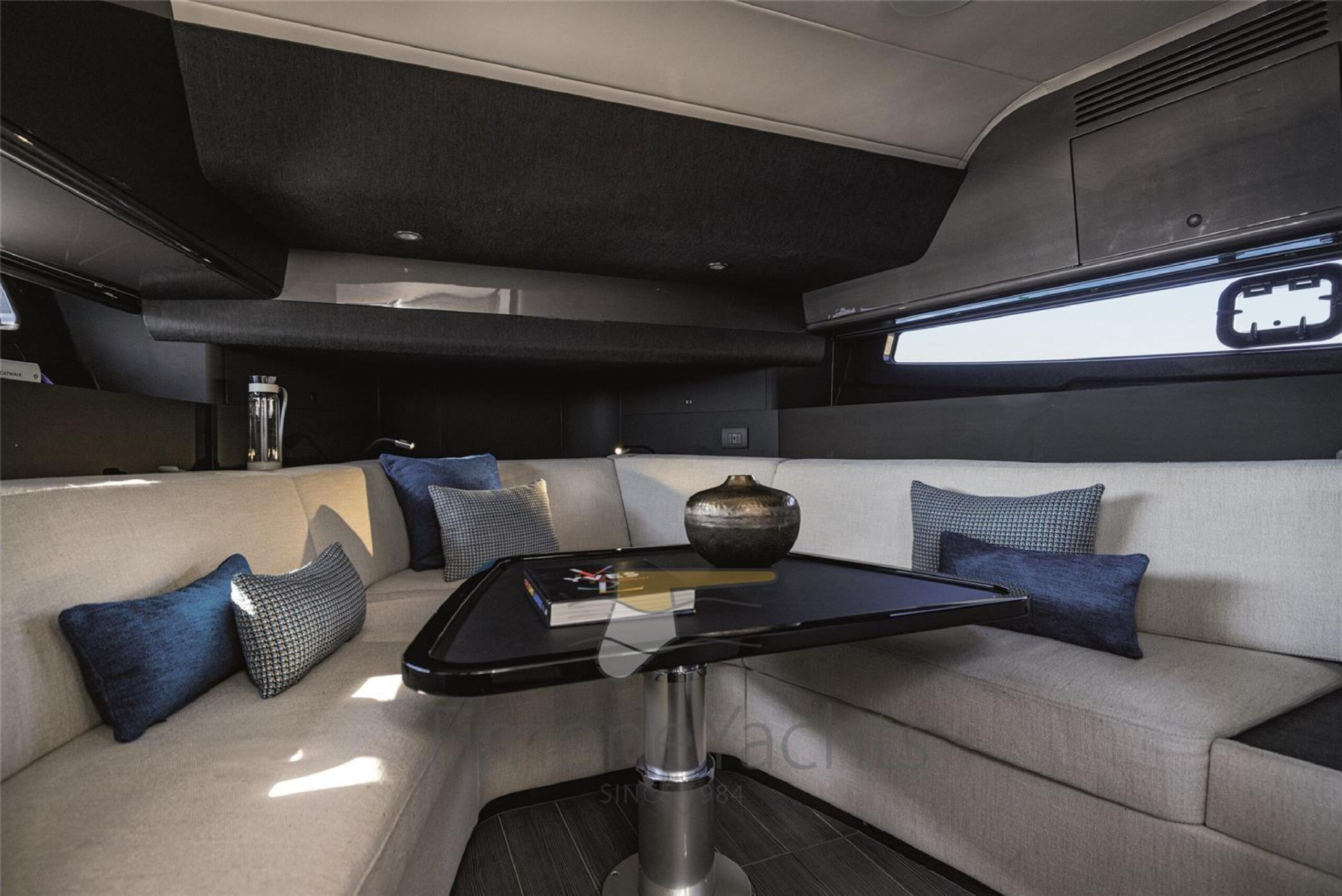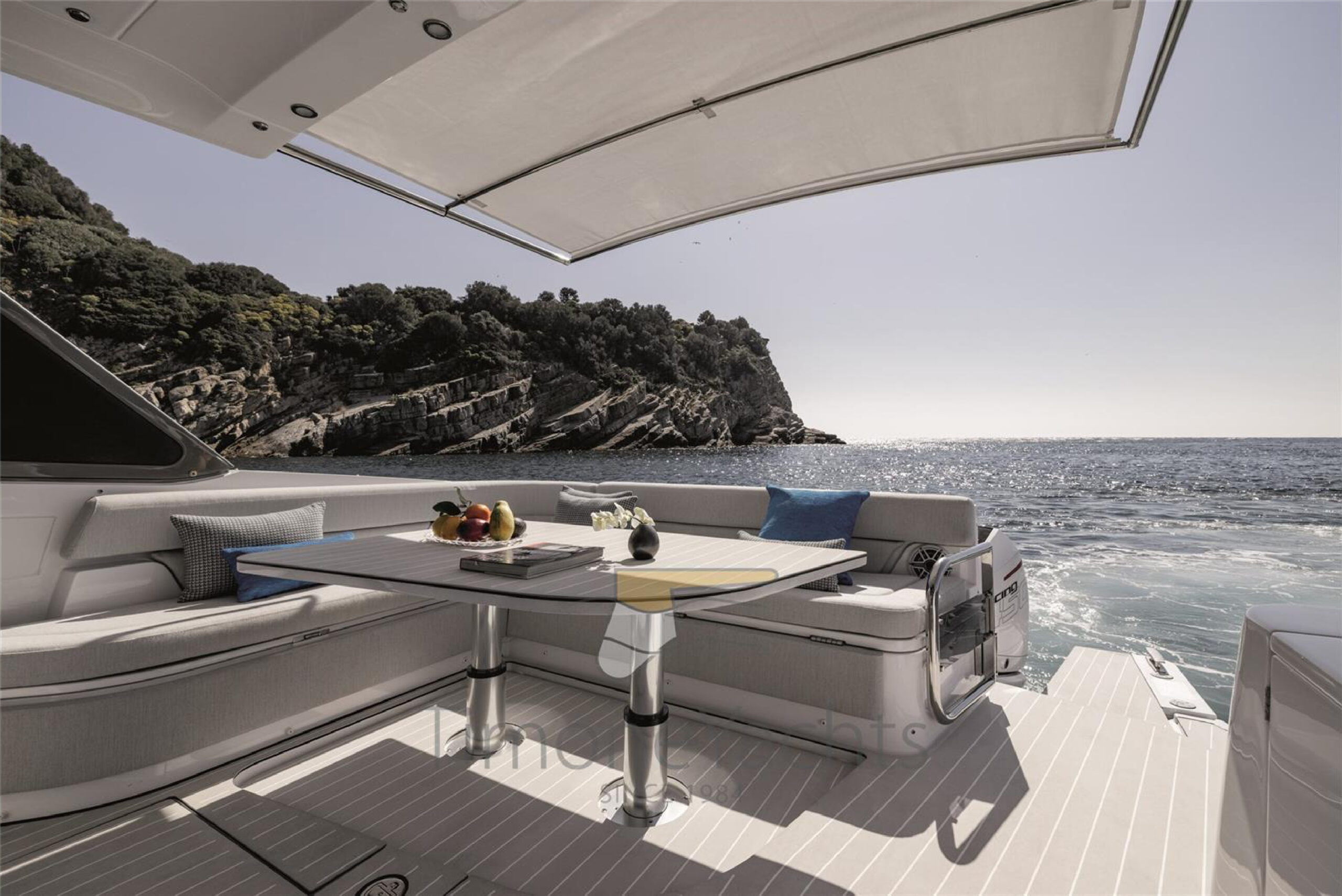 Versatility is to the fore, with a high-low table that can be completely removed from sight, a lateral open section and well-equipped cockpit cabinet creating an enticing, glamorous aft area that is simply made for long, convivial afternoons and evenings relaxing with friends and family. A simple button seamlessly adjusts the height of the cockpit table making it ideal for a meal or as a handy